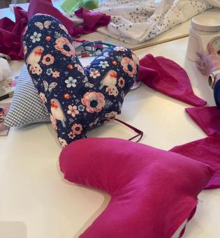 Ganz im Sinne der Initiatorin Nancy Friis-Jensen, einer dänischen Krankenschwester, die die Idee dieser speziellen Kissen für Brustkrebspatientinnen im Jahr 2006 aus Amerika mitbrachte, nähen auch die Berkenthiner LandFrauen mit viel Freude "Herzkissen - verschenkt von Herz zu Herz."