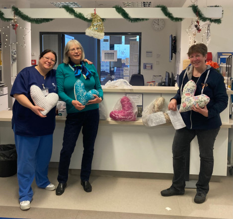 Die LandFrauen Berkenthin und Umgebung e.V. haben sich heute erstmalig mit drei großen Taschen voller Herzkissen auf den Weg ins UKSH Lübeck gemacht.