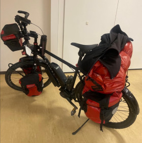 Schon erstaunlich, das minimalistische Gepäck bringt trotzdem 21 Kilo aufs ohnehin schon schewre E-Bike.