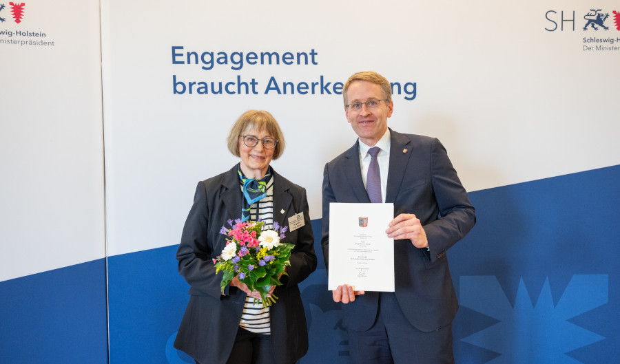 Unser Vorstandsmitglied Angelika von Keiser wurde in Kiel von Ministerpräsident Daniel Günther mit der Ehrennadel des Landes Schleswig-Holstein ausgezeichnet!